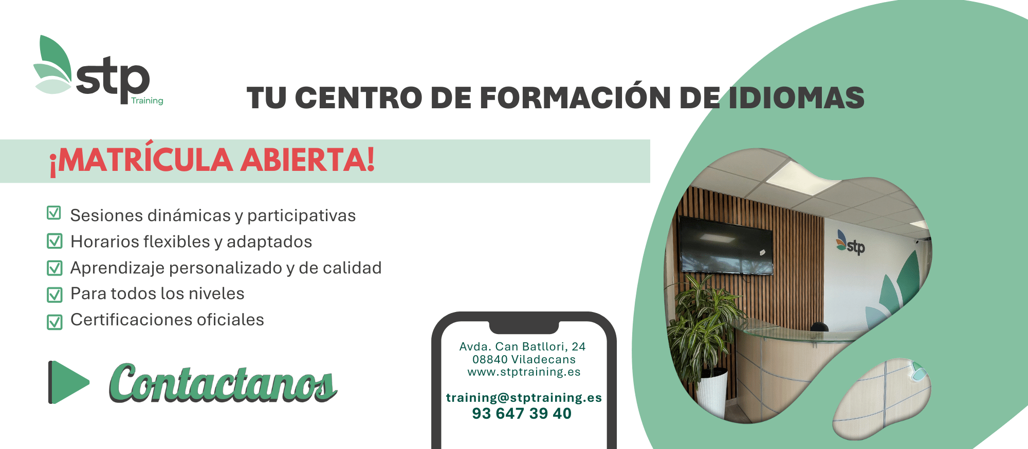 Diseñados para ofrecerte la mejor formación en idiomas, tecnología, IA, marketing y ventas, con la flexibilidad de aprender desde cualquier lugar y en cualquier momento. ¡Inscríbete ahora y empieza a potenciar tu carrera con STP Training OnLive!»